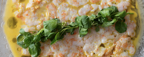 CARPACCIO DE CAMARONES CON DRESSING DE MARACUYÁ